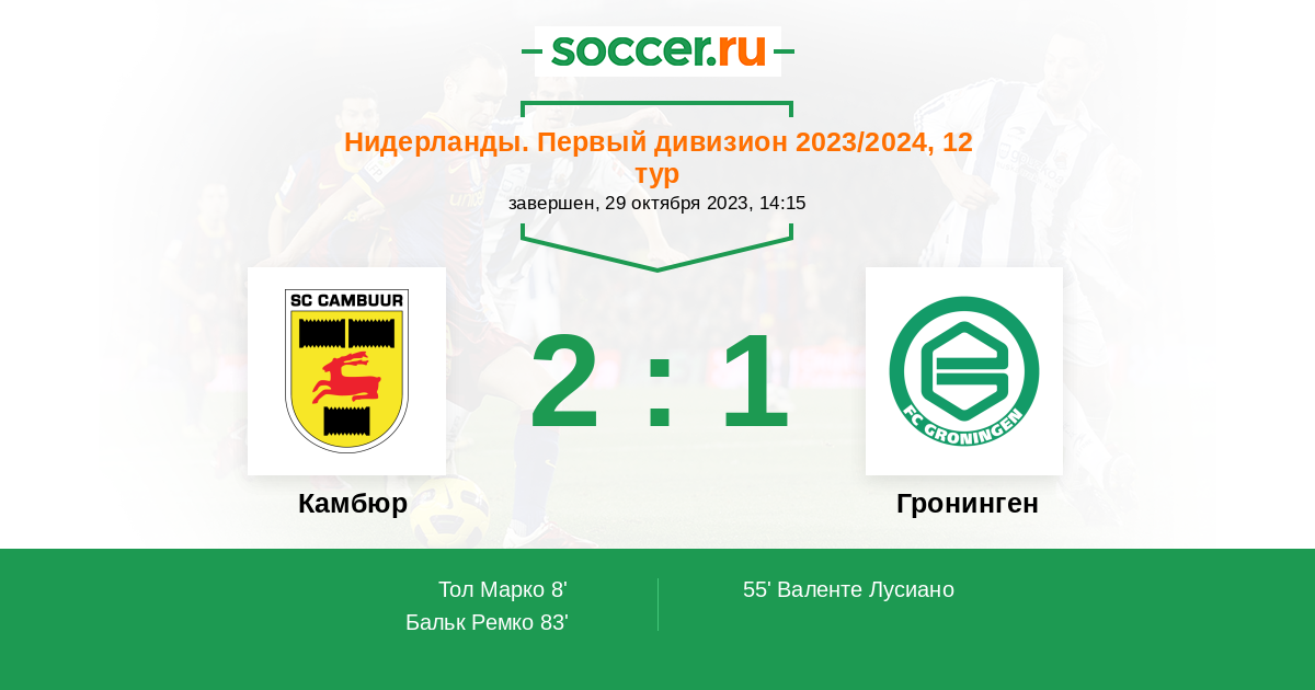 8' (1:0) Тол Марко (15) (Брей Майкл (14))