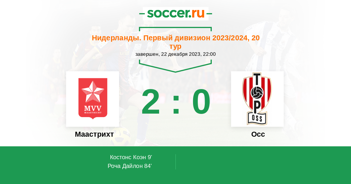 84' (2:0) Роча Дайлон (22) (Слегерс Ферре (18))