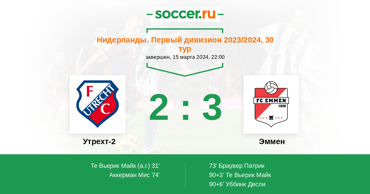 Гол90+3' (2:2) Те Вьерик Майк (4) (Браувер Патрик (21))