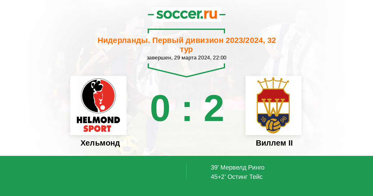 45+2’ 0:2 Остинг Тейс