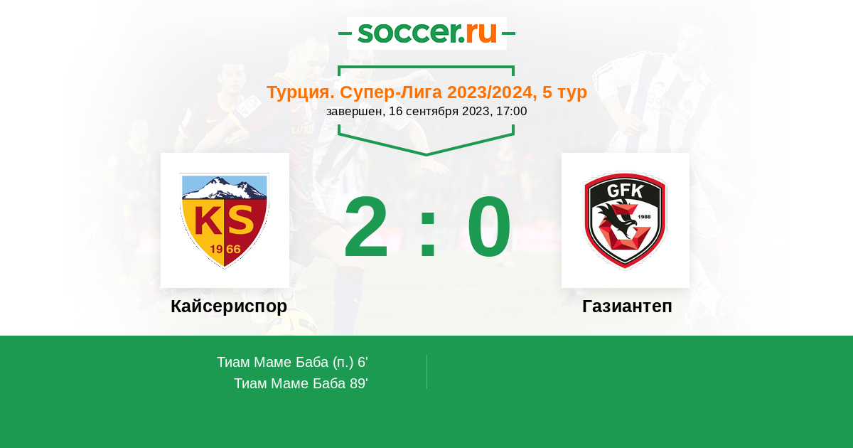 89' (2:0) Тиам Маме Баба (9) (Сариарслан Тальха (99))