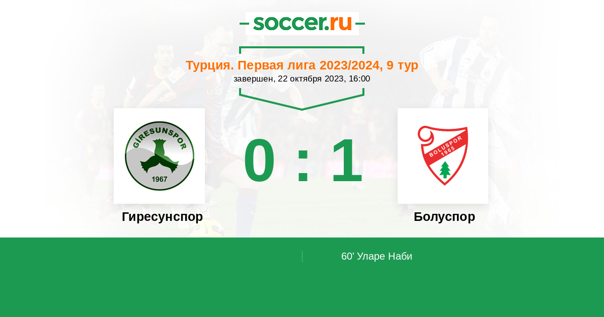60' (0:1) Уларе Наби (13) (Йилдиз Берк (7))