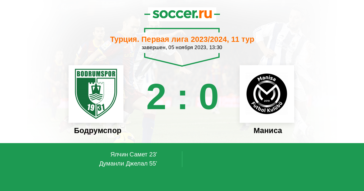 55' (2:0) Думанли Джелал (48) (Озер Кенан (10))