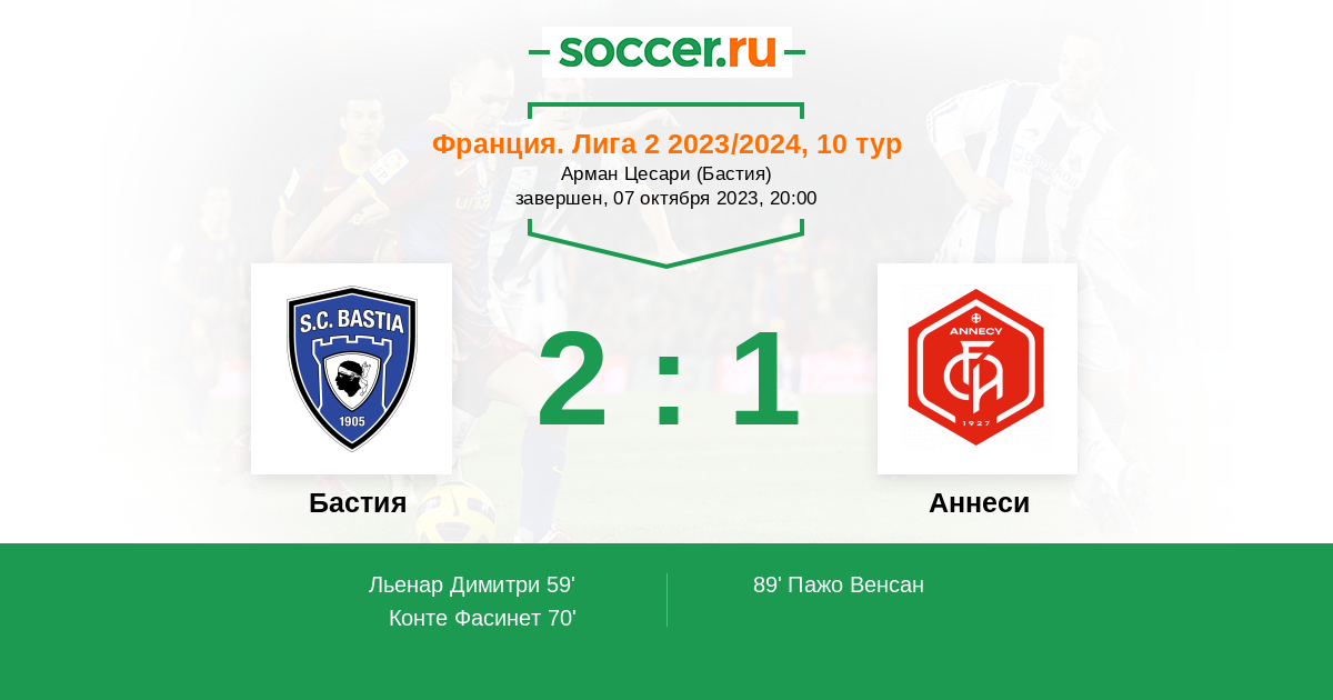70' (2:0) Конте Фасинет (31) (Бьянчини Флориан (17))