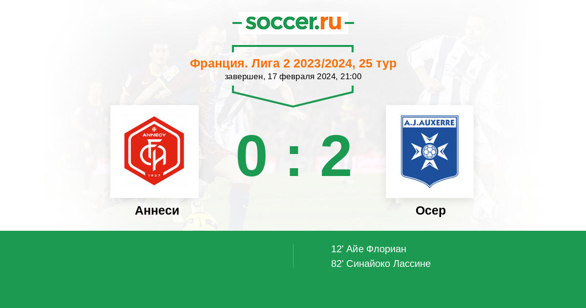 12' (0:1) Айе Флориан (19) (Синайоко Лассине (17))