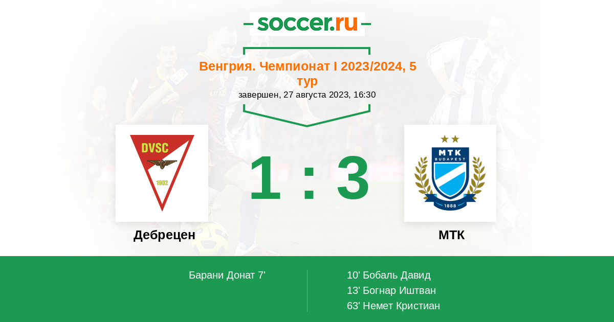 13' (1:2) Богнар Иштван (10) (Немет Кристиан (18))
