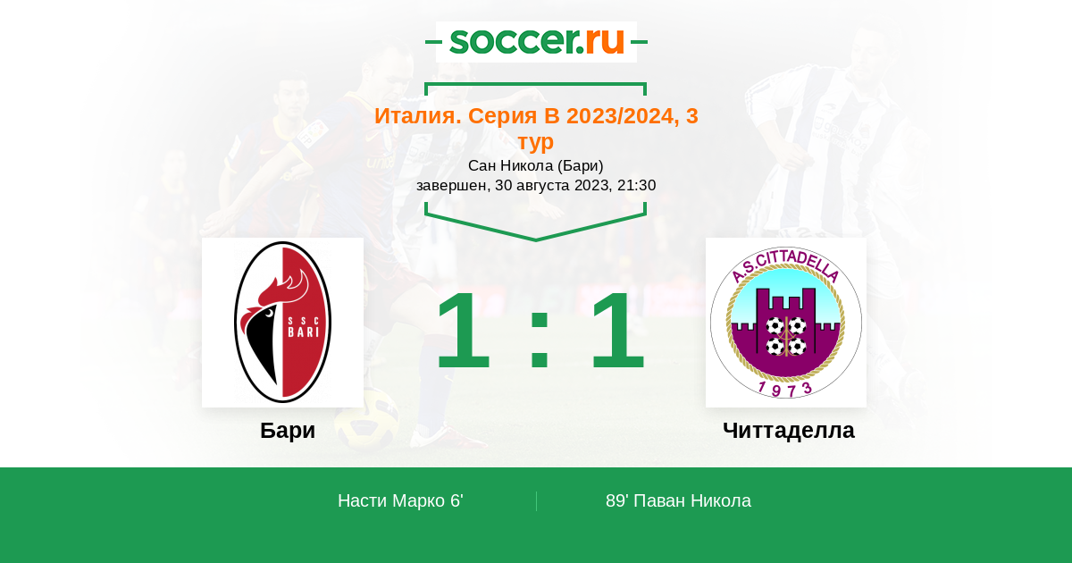 6' (1:0) Насти Марко (9) (Сибилли Джузеппе (20))