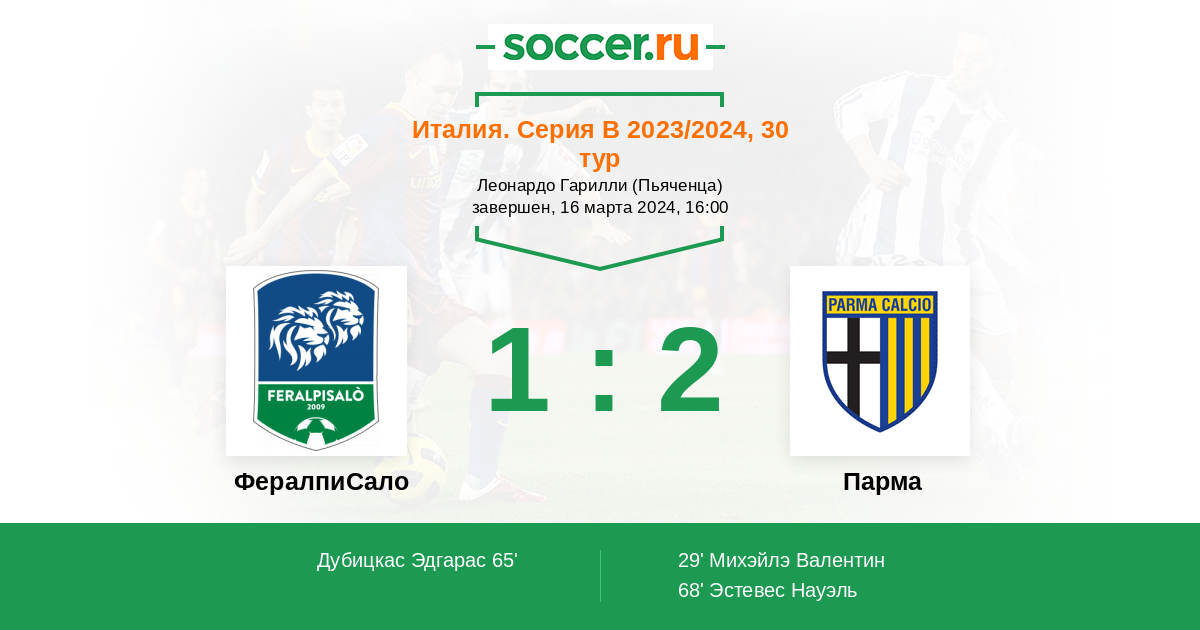 65' (1:1) Дубицкас Эдгарас (11) (Летиция Гаэтано (94))