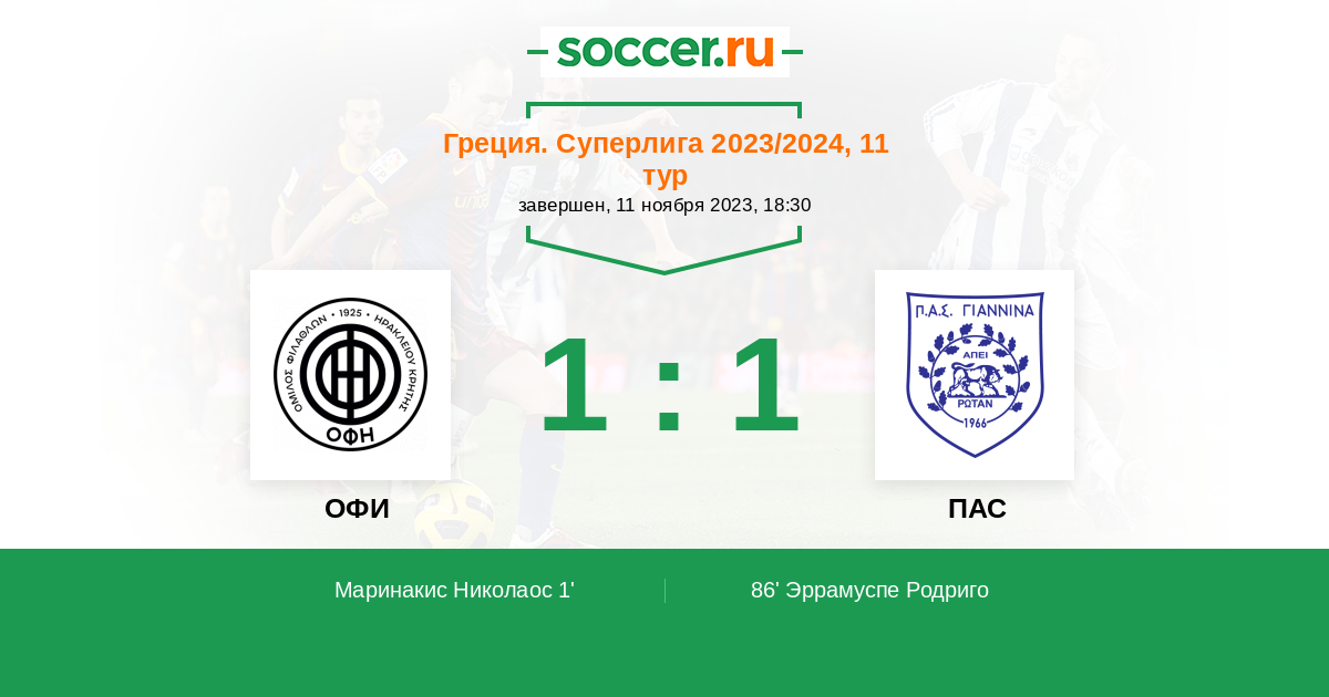 1' (1:0) Маринакис Николаос (6)