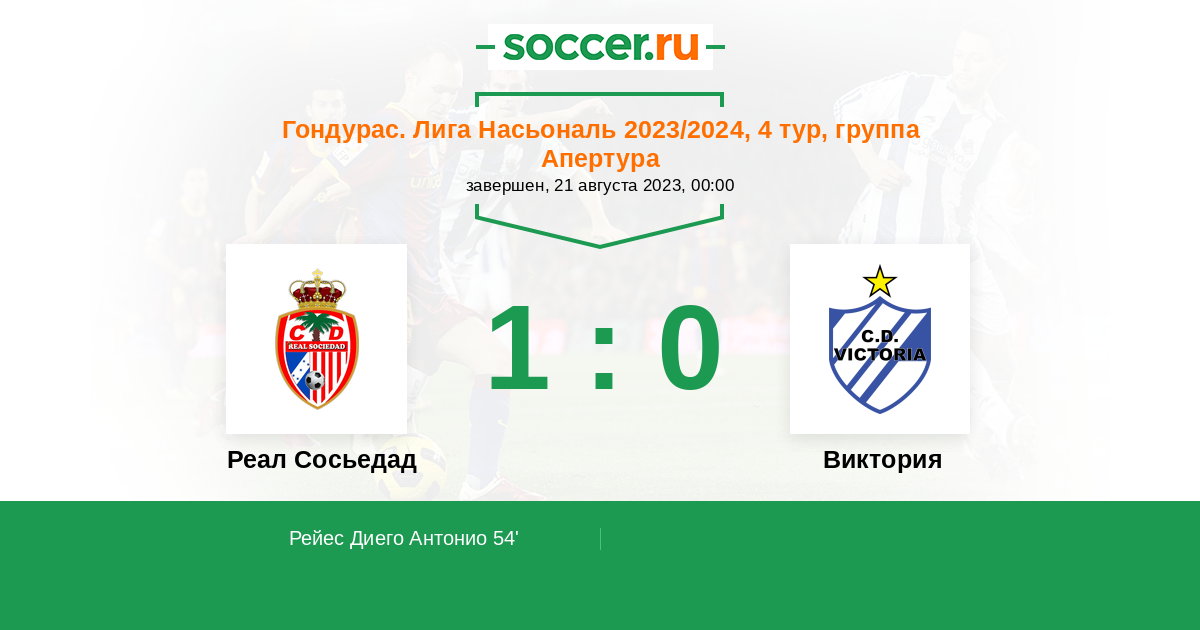 54' (1:0) Рейес Диего Антонио
