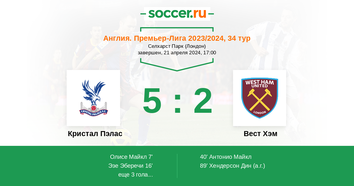89' (5:2) Автогол Хендерсон Дин (30)