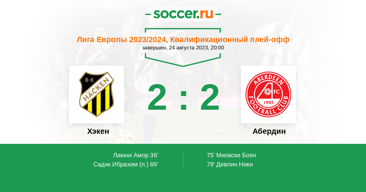 Я думаю чтобы узнать кто в этом противостоянии является более чем явным фаворитом на победу , даже поход к бабке гадалке не нужен . Команда хозяев поля шведский Хэкен не оставит никаких шансов на положительный исход этого противостояния команде гостей из Шотландии Абердин .