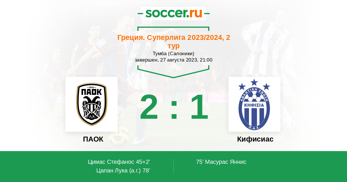 45+2' (1:0) Цимас Стефанос (95)