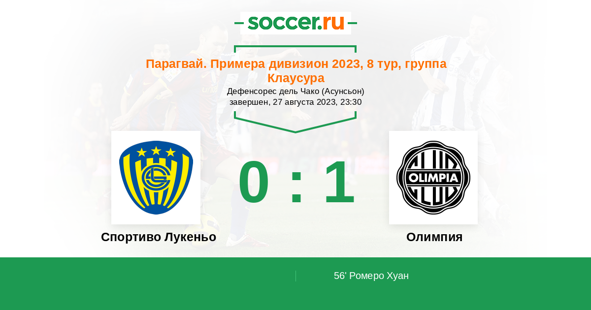 56' (0:1) Ромеро Хуан (28) (Бруэра Факундо (9))