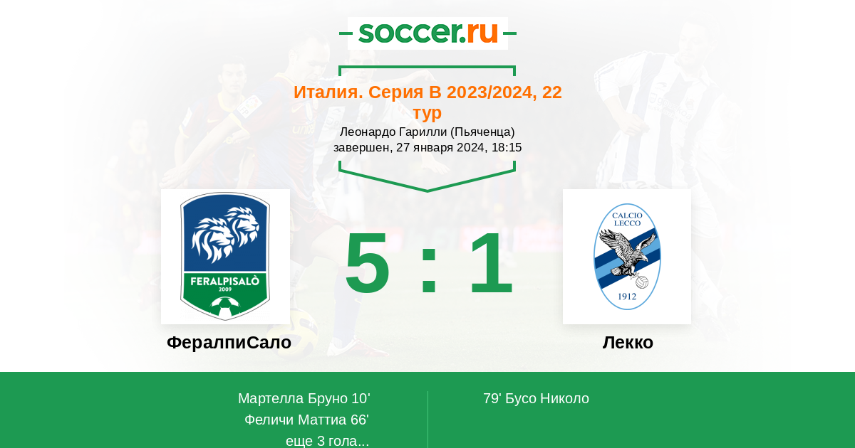 86' (4:1) Бутич Карло (9) (Балестерро Давиде (8))