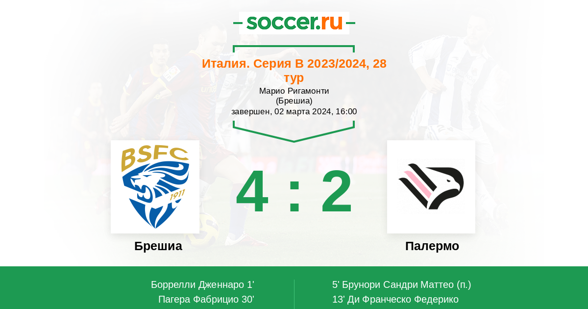 1' (1:0) Боррелли Дженнаро (29) (Дикманн Лоренцо (24))