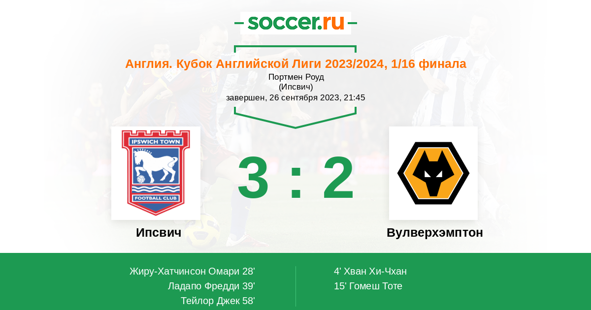 28' (1:2) Жиру-Хатчинсон Омари (20) (Харнесс Маркус (11))