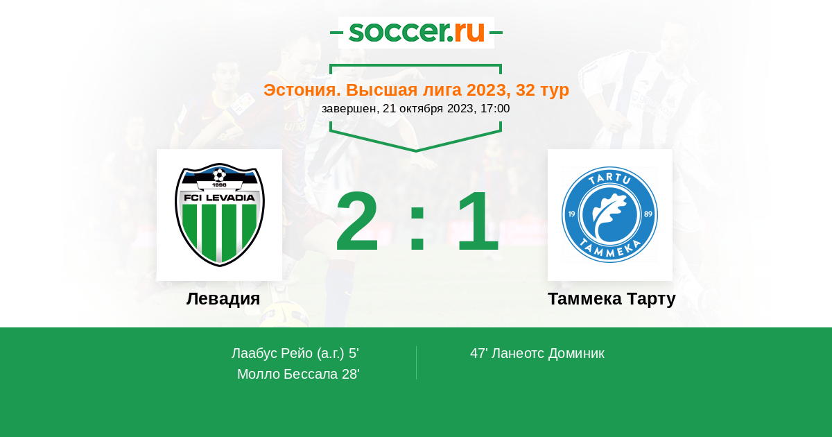 5' (1:0) Автогол Лаабус Рейо (13)