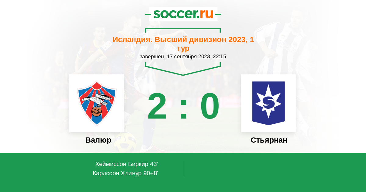Гол90+8' (2:0) Карлссон Хлинур (3) (Харальдссон Триггви (12))