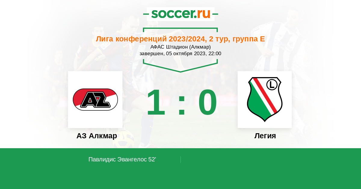52' (1:0) Павлидис Эвангелос (9) (Де Вит Дани (10))