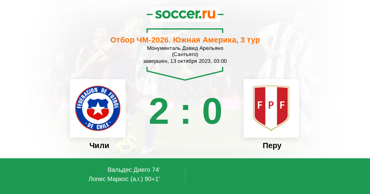 74' (1:0) Вальдес Диего (15) (Пульгар Эрик (13))