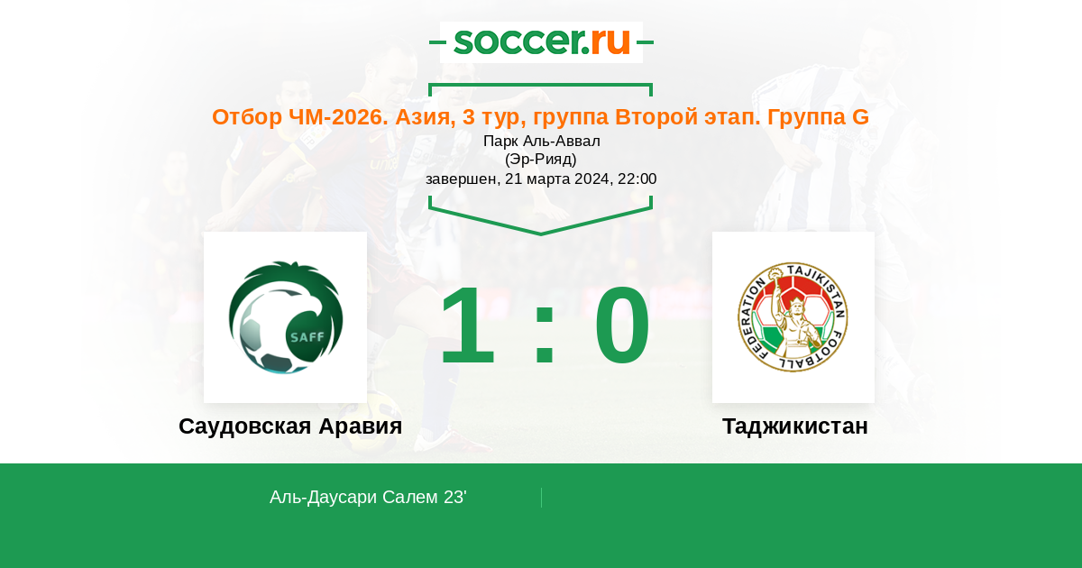 В предстоящем матче 3 - го тура второго этапа отбора на чемпионат мира по футболу 2026 года в группе Ж между командами сборной Саудовской Аравии и сборной Таджикистана, более чем явным фаворитом на победу является команда хозяев.