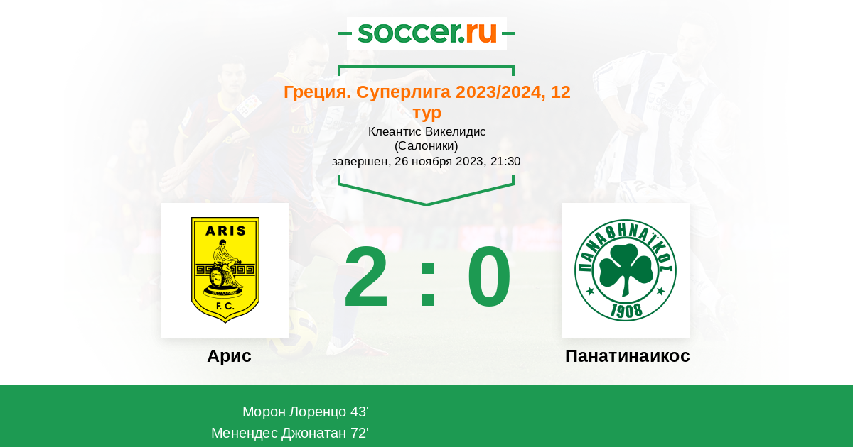 72' (2:0) Менендес Джонатан (27) (Дарида Владимир (16))