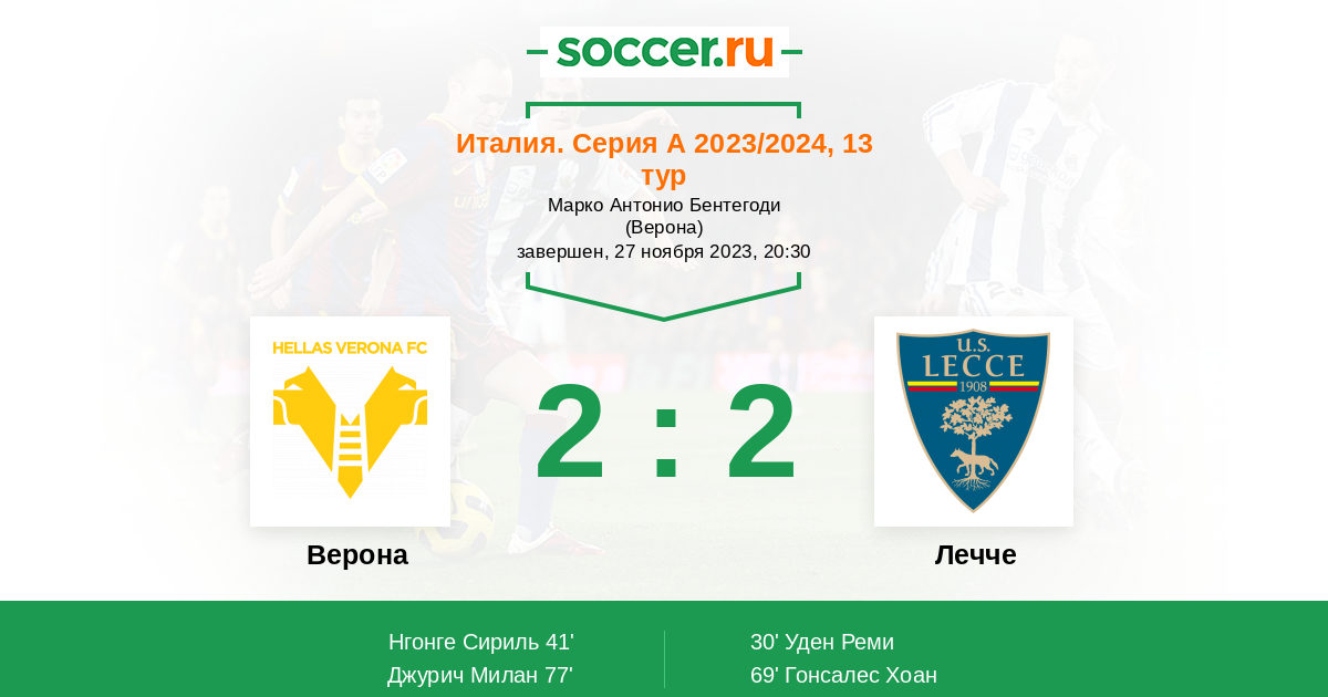 “Верона” в ужасной форме и на данный момент команда занимает предпоследнее место в турнирной таблице. У “Лечче” тоже уже давненько нет побед, но при этом гости проиграли всего лишь четыре матча. Три подряд матча на своем поле “Верона” уступила, но в тоже время у гостей нет ни одной победы на выезде.