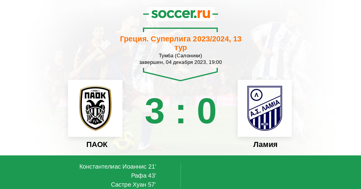 57' (3:0) Састре Хуан (23) (Константелиас Иоаннис (7))