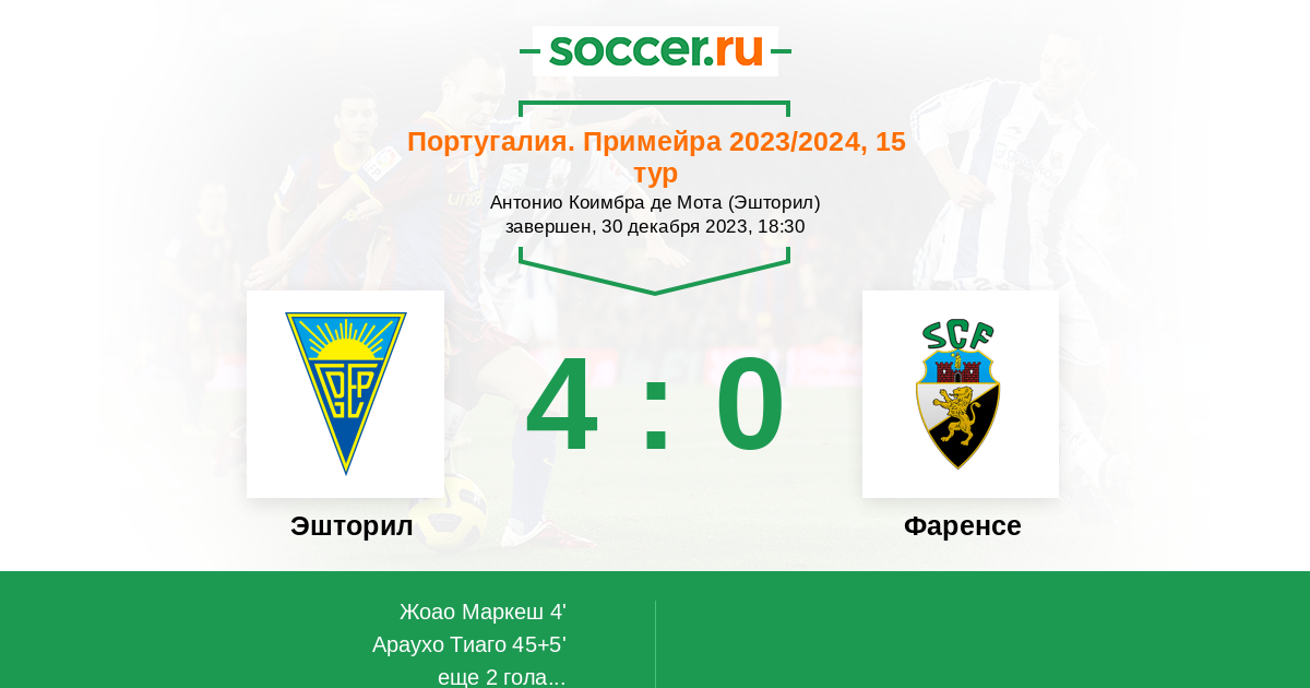 47' (3:0) Жоао Маркеш (33) (Кассиано (11))