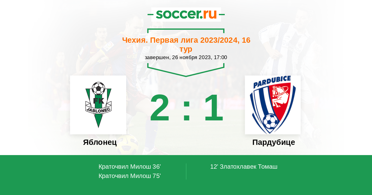 36' (1:1) Краточвил Милош (17) (Чернак Михал (95))