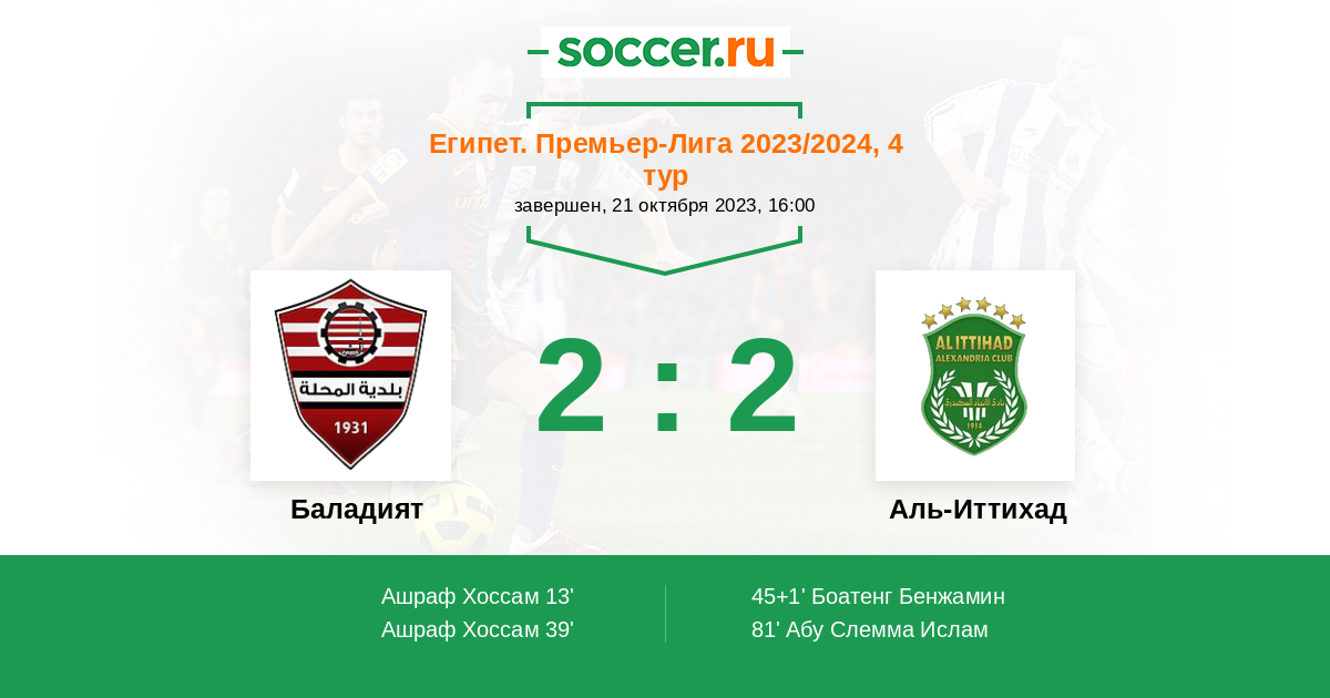 13' (1:0) Ашраф Хоссам (9) (Хасан Хоссам (24))