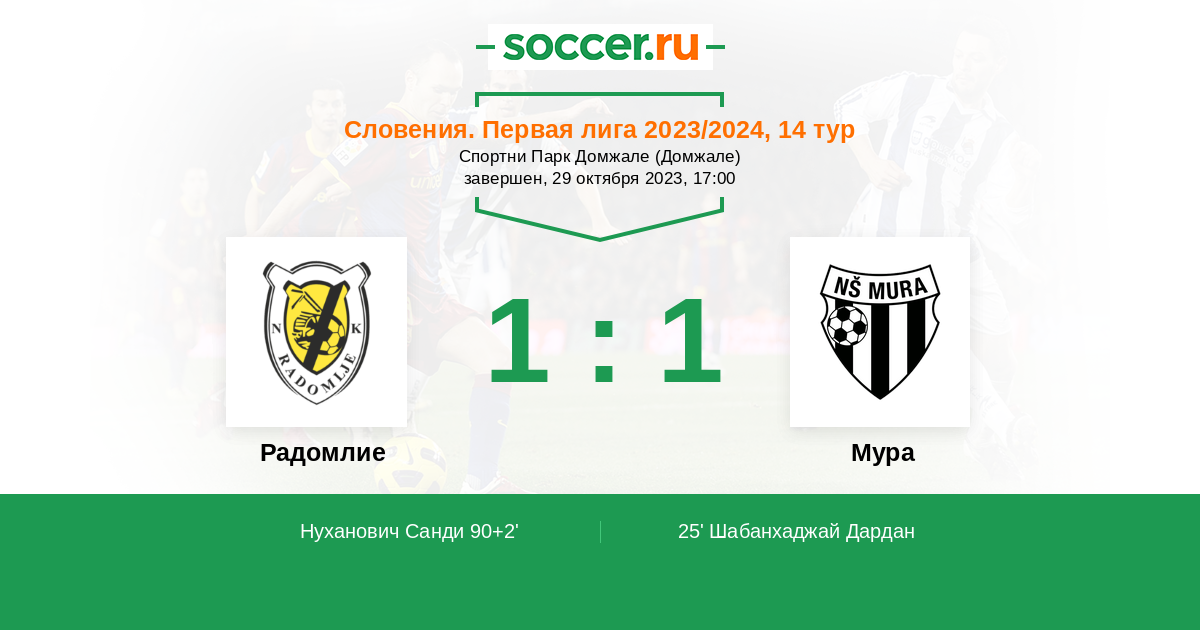 Гол90+2' (1:1) Нуханович Санди (8)