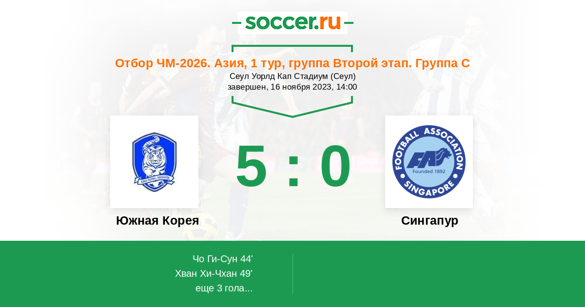 49' (2:0) Хван Хи-Чхан (11) (Чо Ги-Сун (9))