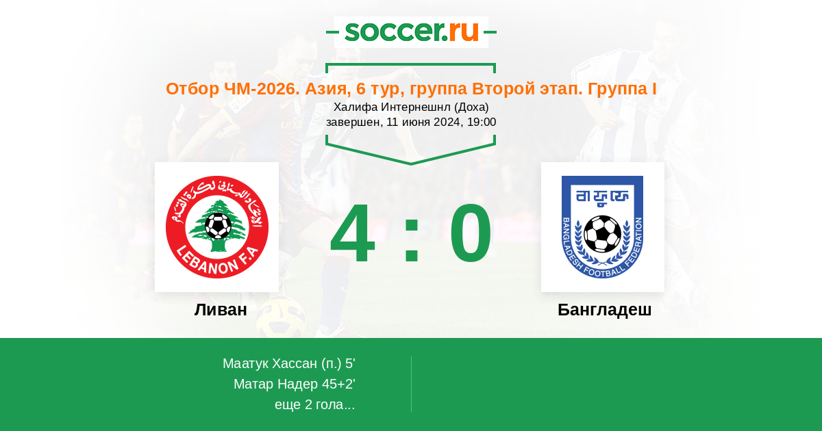 45+2' (2:0) Матар Надер (14) (Нассар Нассар (5))