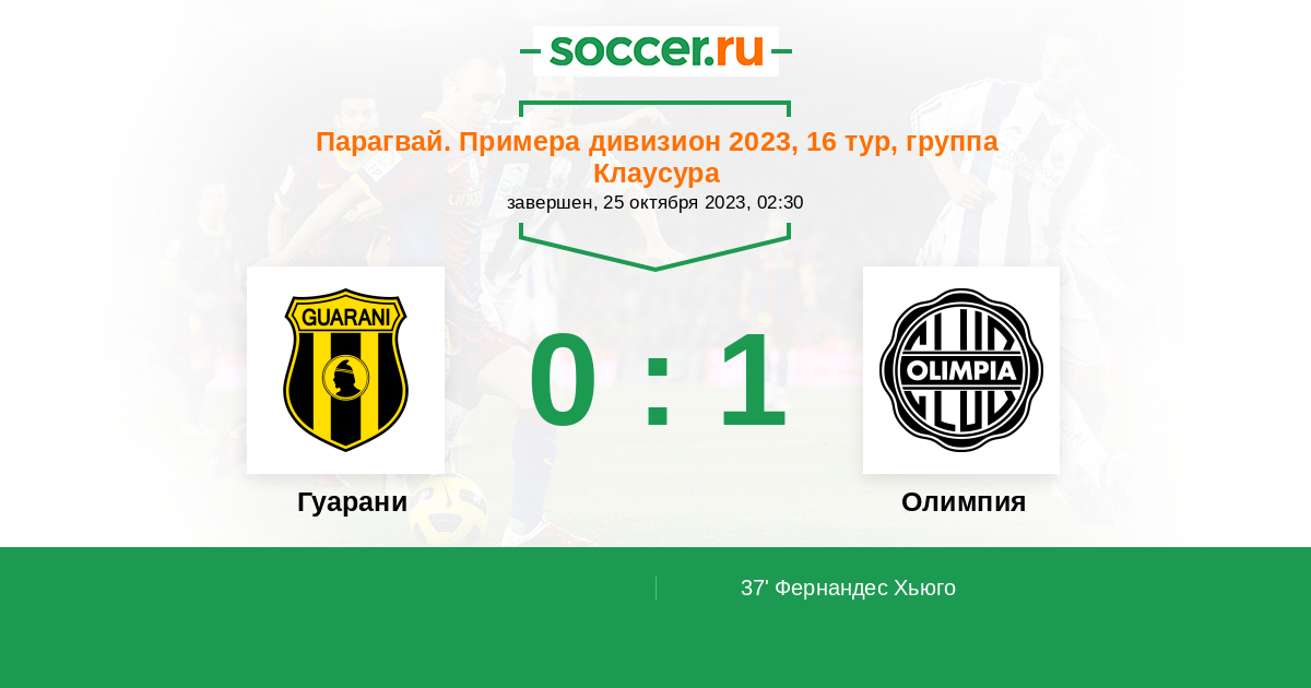37' (0:1) Фернандес Хьюго (7) (Гонсалес Вальтер (25))