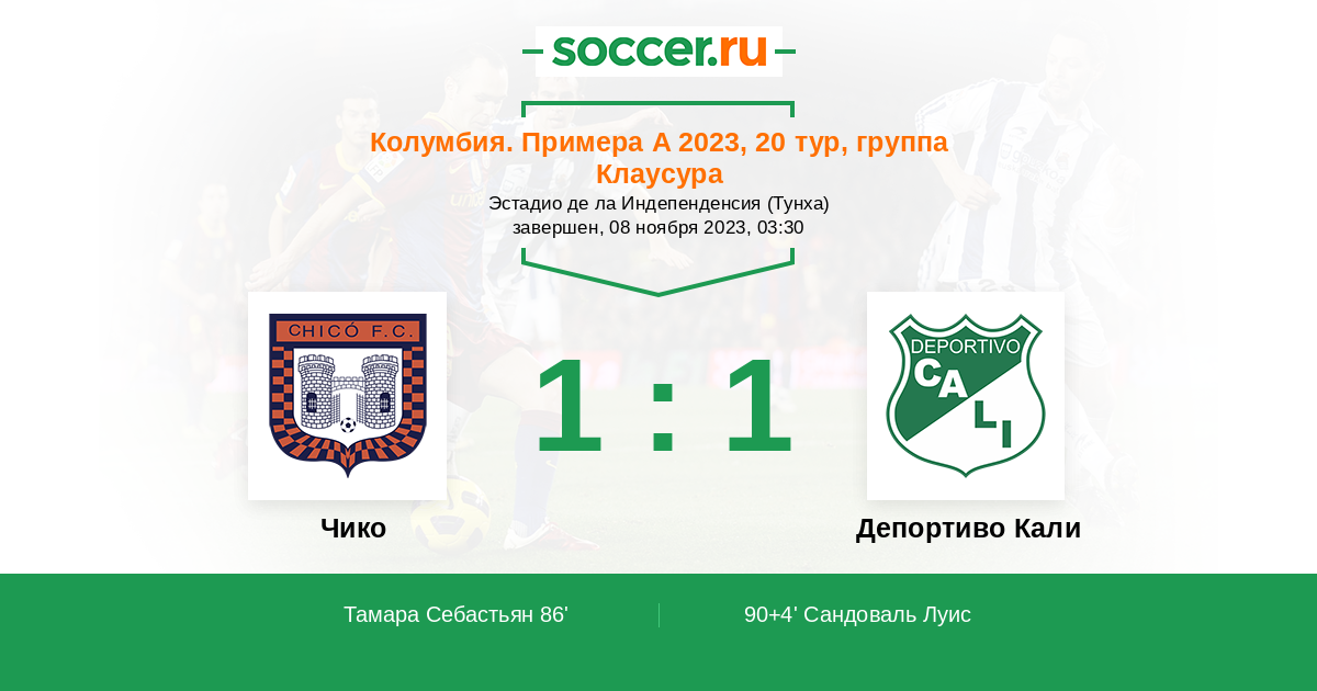 Гол90+4' (1:1) Сандоваль Луис (19) (Гутьеррес Теофилио (29))