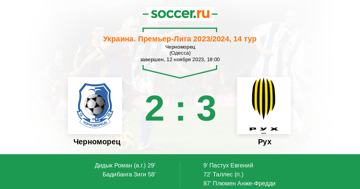87' (2:3) Плюмен Анже-Фредди (22) (Дидык Роман (29))