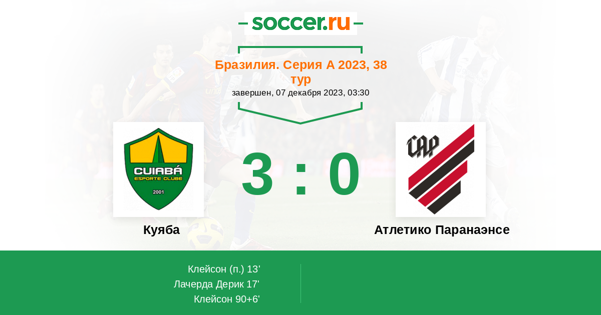 17' (2:0) Лачерда Дерик (22) (Клейсон (29))