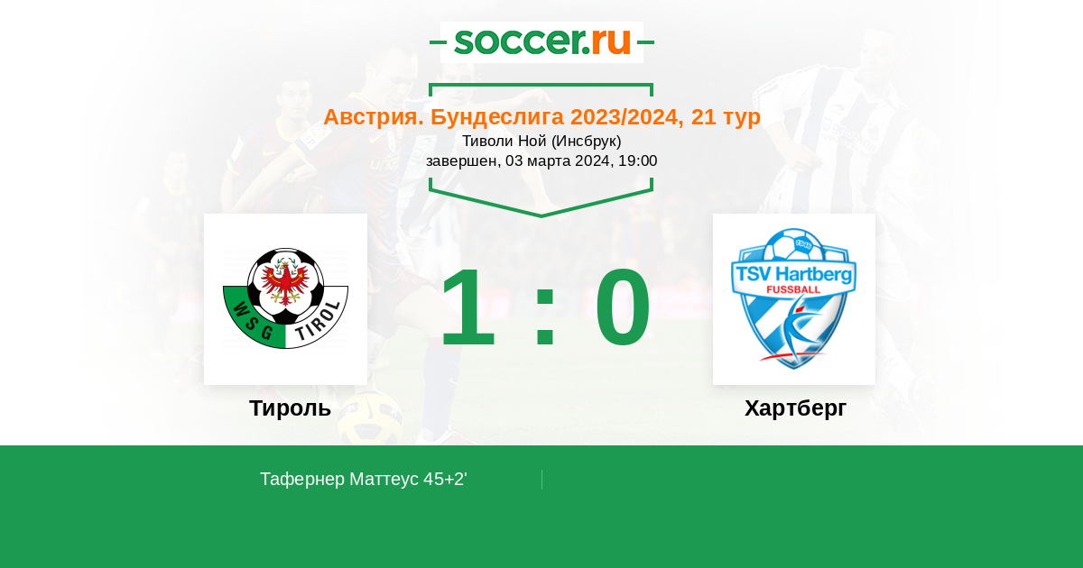 45+2' (1:0) Тафернер Маттеус (30) (Шульц Кофи (44))