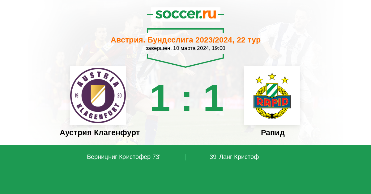 73' (1:1) Верницниг Кристофер (24) (Шварц Арон (77))