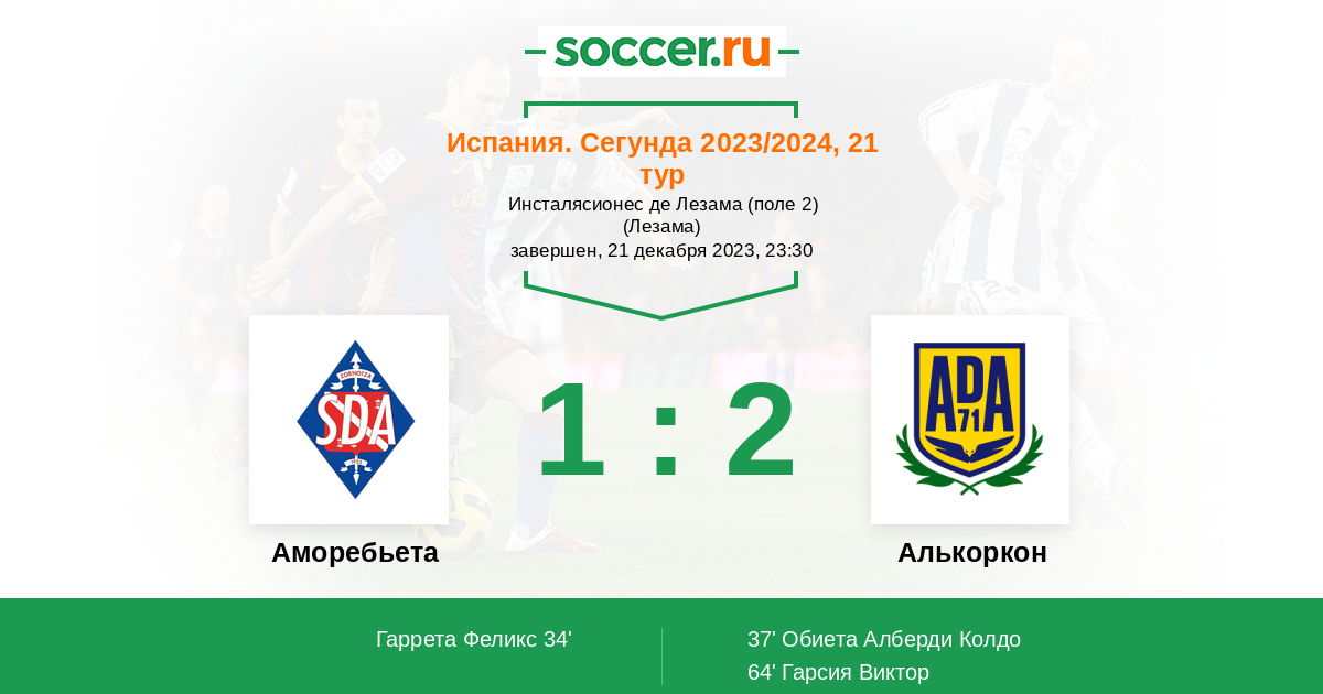 37' (1:1) Обиета Алберди Колдо (21) (Гонсалес Якобо (8))