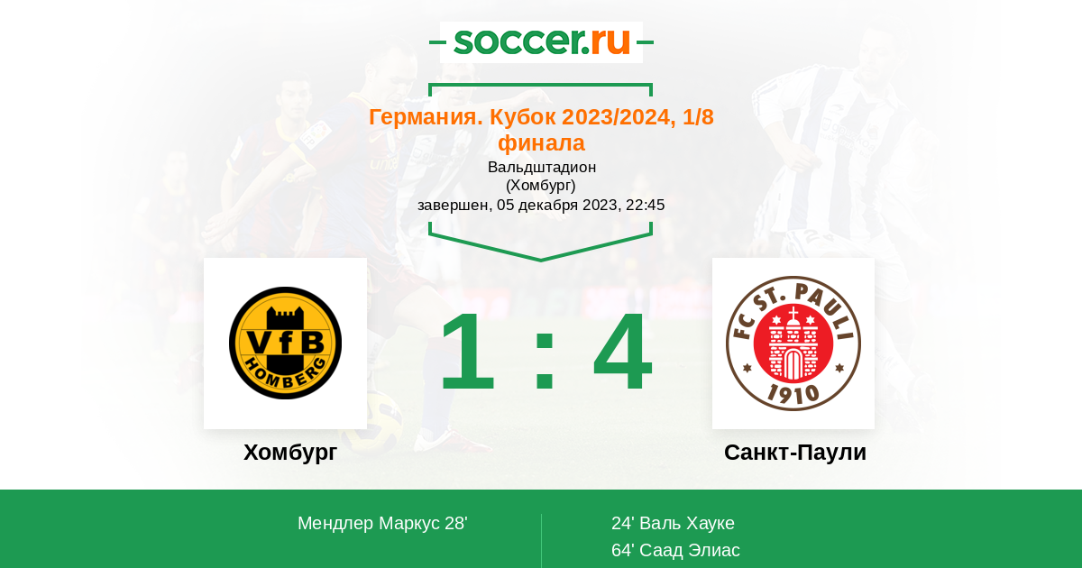 На мой субъективный взгляд это будет один из самых интересных матчей 1/8 кубка Германии . Команда хозяев поля успела перед этим матчем выбить из кубка команду Бундеслиги Дармштадт со счётом 3:0 , следующей командой стал Гройтер Фюрт один из лидеров второй Бундеслиги . Теперь вот лидер второй Бундеслиги Санкт - Паули . Победа гостей и ТБ 2.50 .