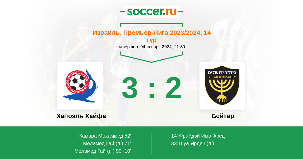 52' (1:2) Камара Мохаммед (7) (Йосефи Томер (10))