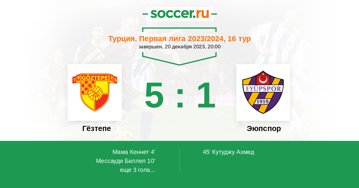 10' (2:0) Мессауди Биллел (45) (Мама Кеннет (23))