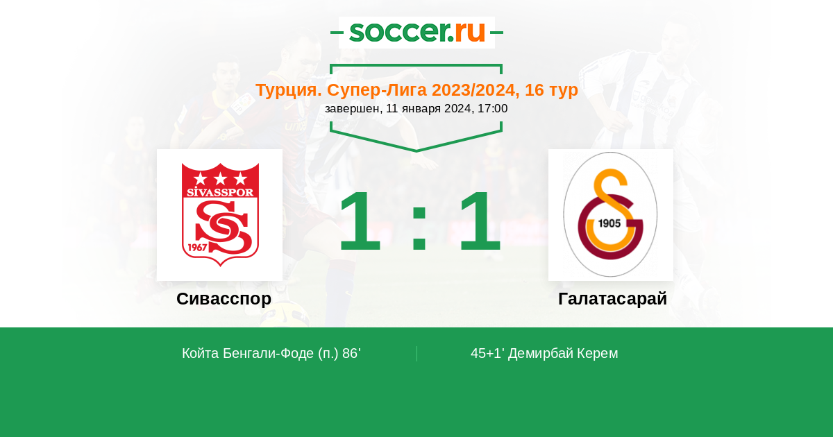 45+1' (0:1) Демирбай Керем (8) (Заха Вилфрид (14))
