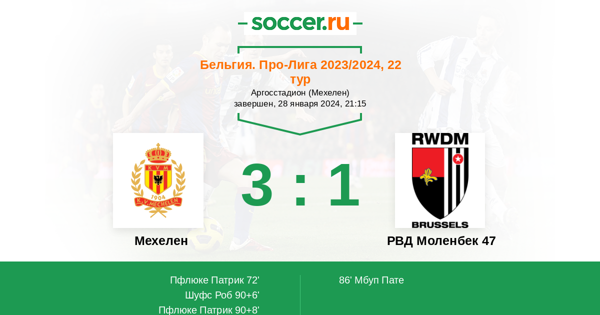 Мехелен по всем выкладкам немного сильнее, чем РВД Моленбек, у которого основные проблемы с набором очков на выезде. И в этом матче проблемы должны возникнуть, и чуть более сильный Мехелен должен победить.