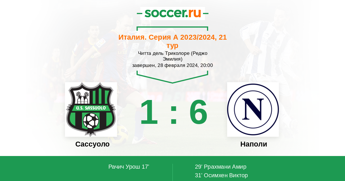 В предстоящем матче 21 тура Серии А между командами Сассуоло и Наполи явным фаворитом является команда Наполи . Они выше в таблице и более удачливы в истории последних личных встреч...