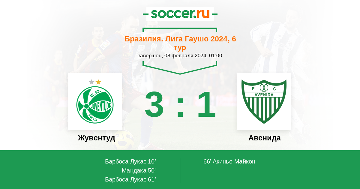 66' (3:1) Акиньо Майкон (7) (Бруниньо (17))