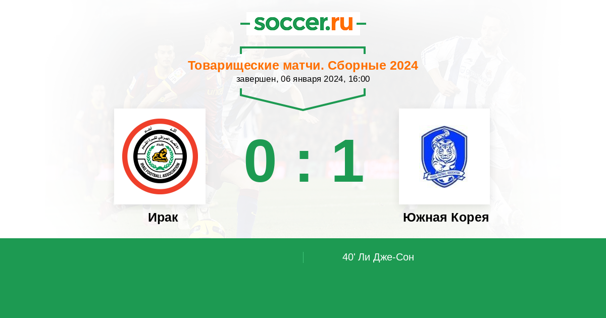 40' (0:1) Ли Дже-Сон (10) (Сеол Юн-Ву (22))